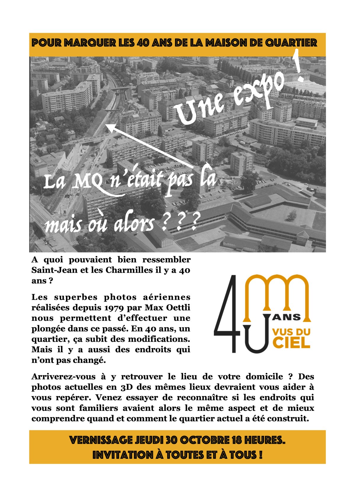 Vernissage de l'exposition le jeudi 30 octobre à la MQ dès 18h00.