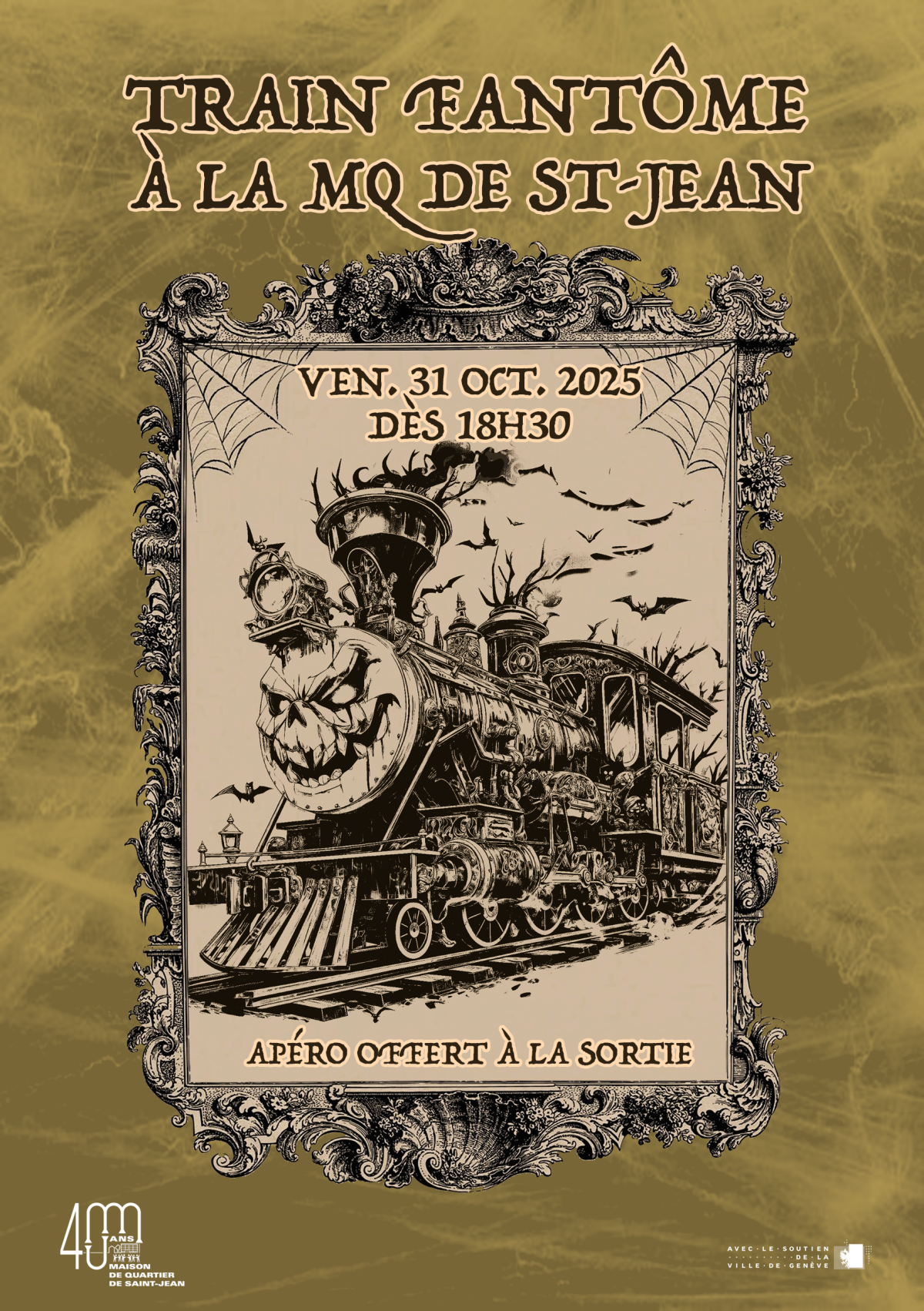 Le vendredi 31 octobre de 18h30 à 21h30, le train fantôme de la MQ Saint-Jean ouvre ses portes aux habitant.e.s du quartier. Venez découvrir les différentes salles du sous-sol transformées pour l’occasion en musée des horreurs. Venez ensuite vous remettre de vos émotions avec un apéro offert.